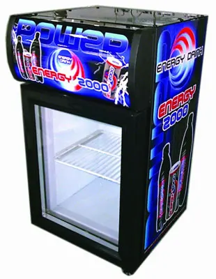 soft energy drinks; fresh keeping preserving refrigerating fridge display showcase refrigerator cooler