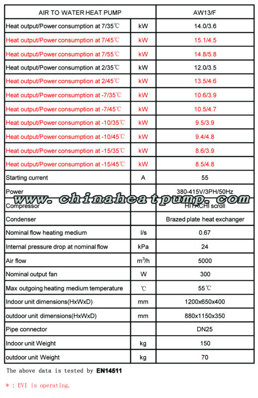 Hiseer split low temperature heat pump , AW13/F , with CE certification , TUV test report by EN14511 , can be used at -25 degree ambient temperature thanks to EVI technology .
